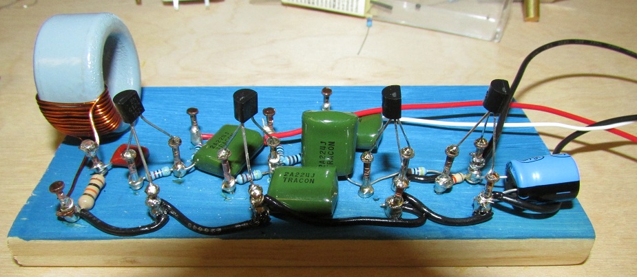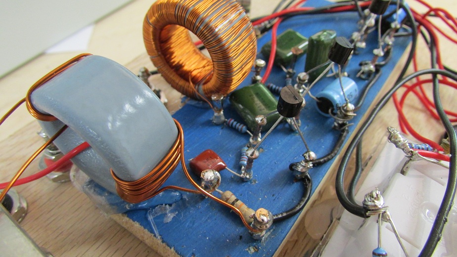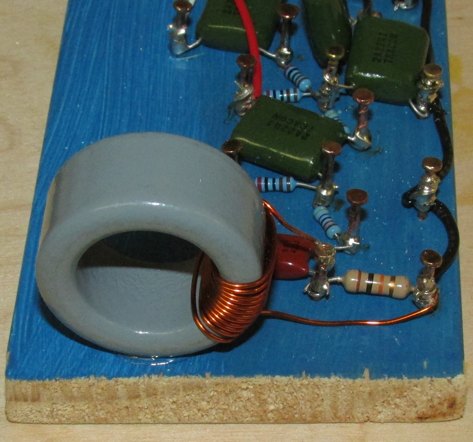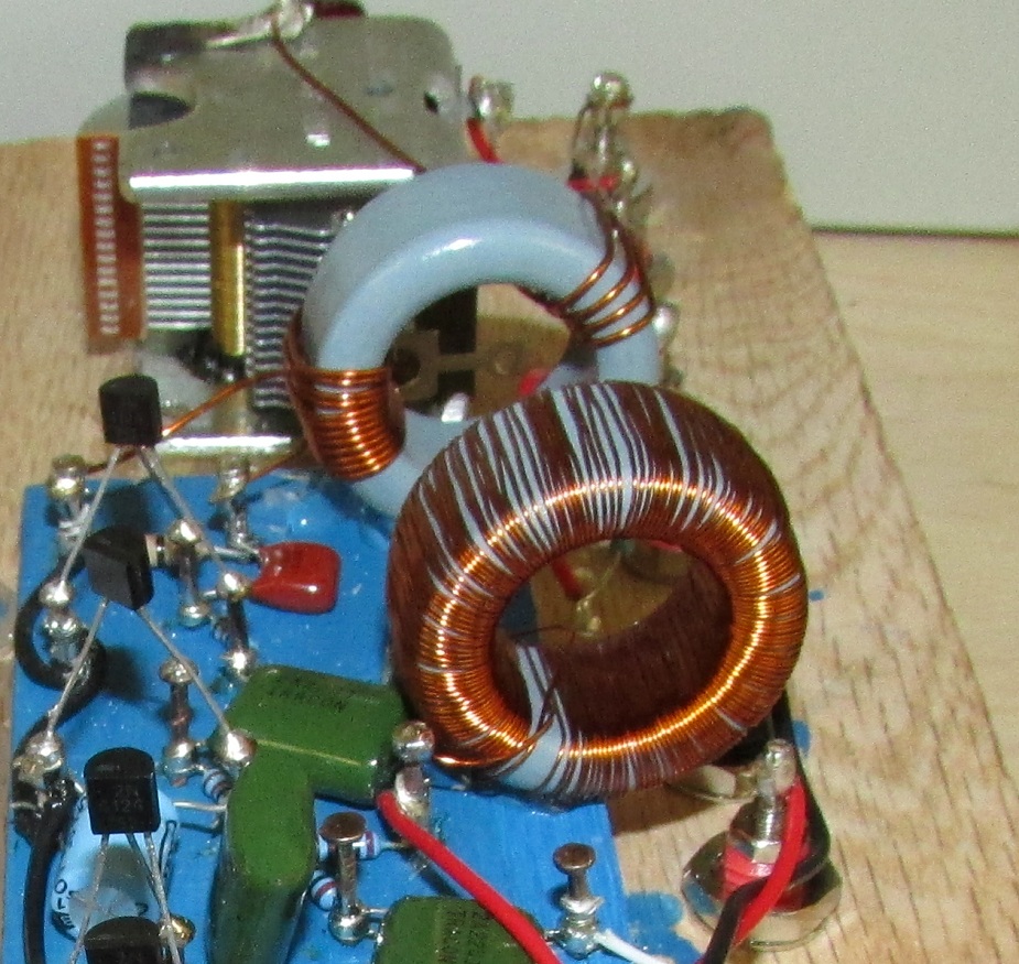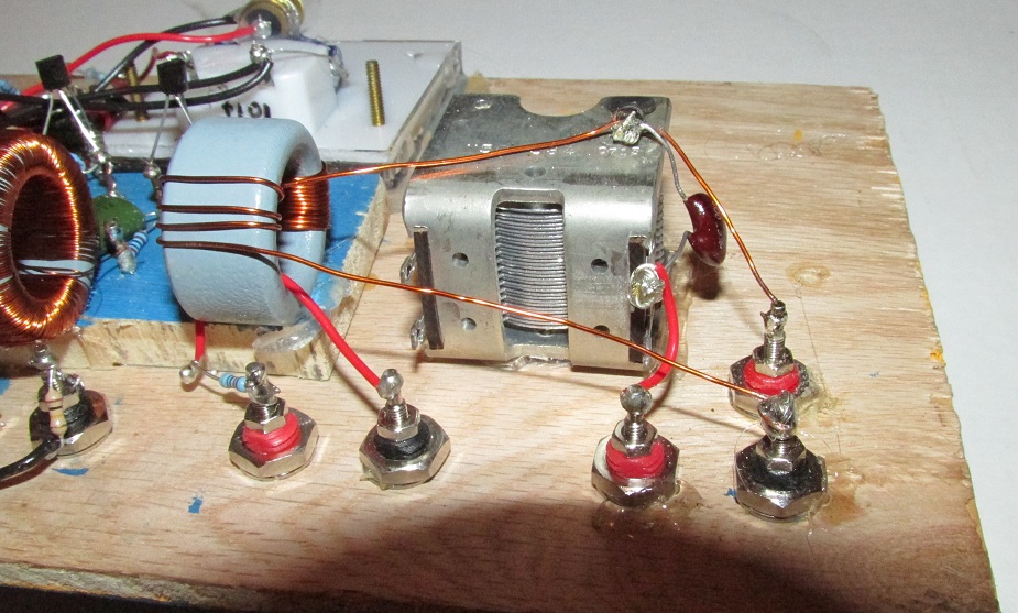 6-6-2015: We changed out the 6 turns of black wire used for L1 coil to 4 turns of 22 gage magnet wire as indicated in the parts list above on this page. See photos below for details.