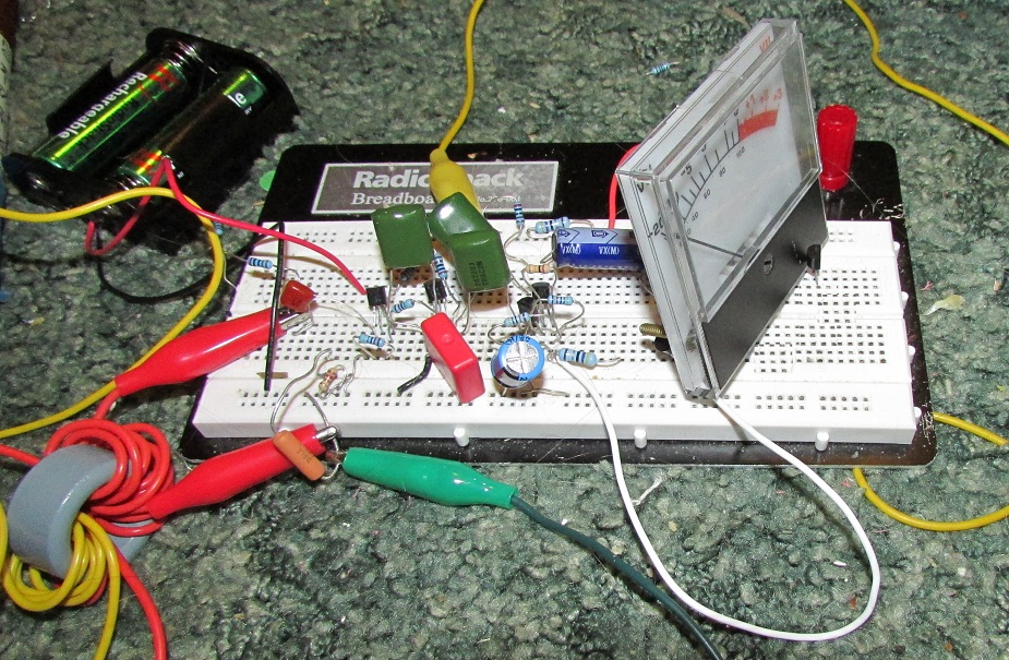 Revision 6-8-2015: Moved R12 position to that now shown in the circuit diagram above on this page. Output is no longer taken directly out of the meter. This gives a higher level of output for clearer recordings.